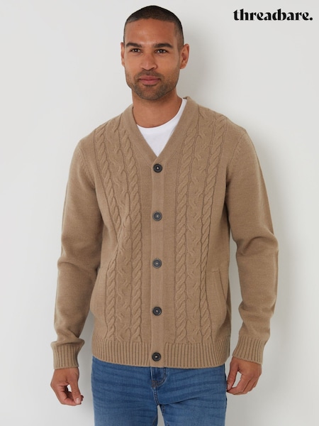 Threadbare Blue Cable Knit Detail V-Neck Cardigan