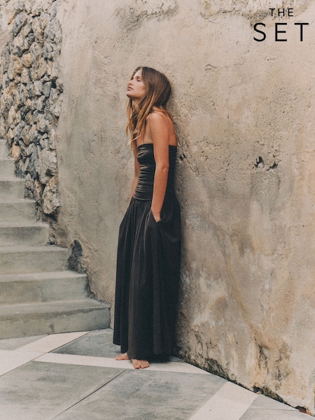 The Set 2 Pack Strapless Ruched Bandeau Jersey Maxi Dresses Black/Brown
