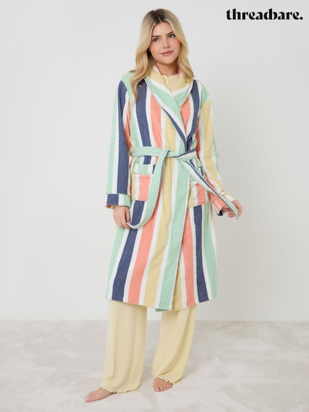 Threadbare Pastel Stripe Towelling Midi Dressing Gown