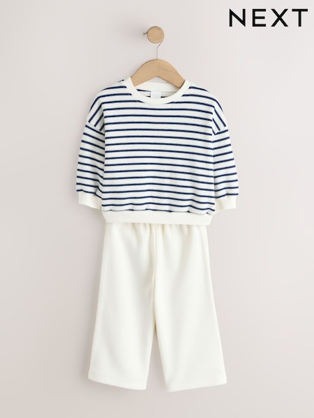 Ecru/Navy Stripe - Long Sleeve Top and Wide Leg Joggers Set (3mths-7yrs)