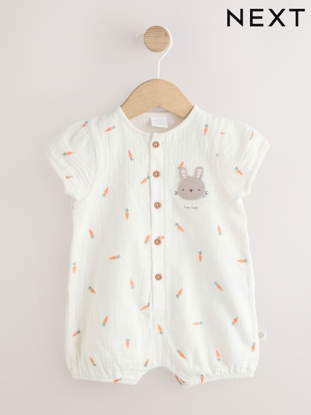 Білий зайчик - Дитячий тканий комбінезон (0місяців-3років)