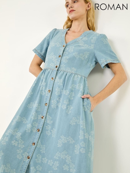 Синій - Roman джинси сукня-халат середніх розмірів 100% Cottton сукня