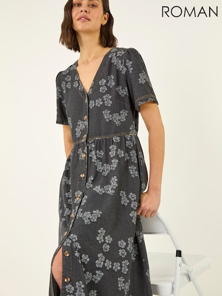 Чорний - Roman джинси сукня-халат середніх розмірів 100% Cottton сукня